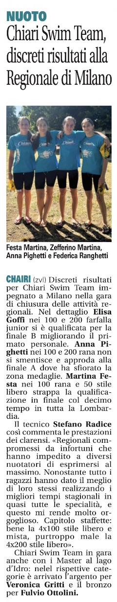 REGIONALI ES B A e CATEGORIA a LODI buoni risultati per tutti!