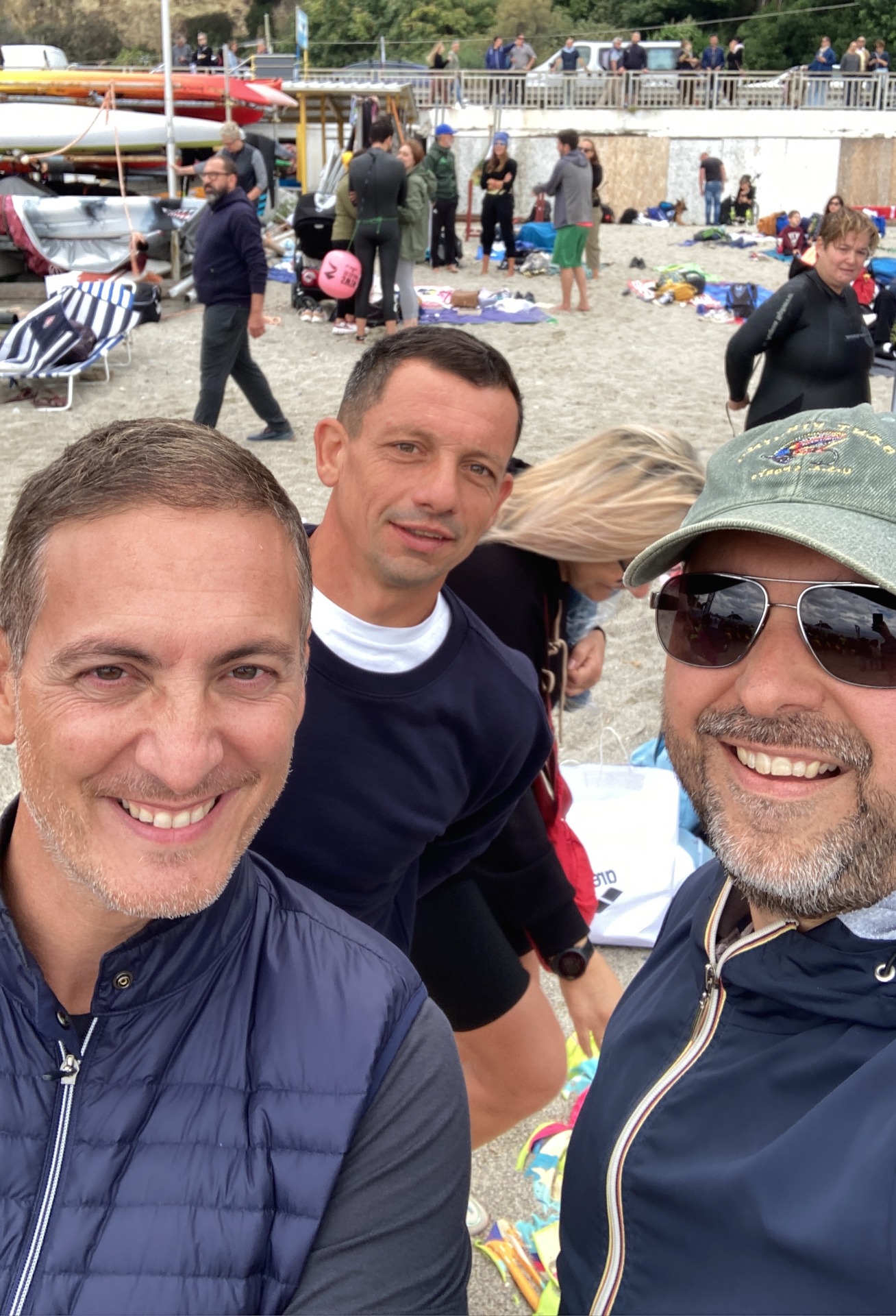 DA SINISTRA FABIO ED ENRICO CON FILIPPO MAGNINI CAMPIONE MODIALE DI NUOTO DOPO I DUE SUCCESI AL TROFEO MASTER DEL 17 DICEMBRE 2022 ORGANIZZATO PRESSO L'IMPIANTO DELL'UNIVERSITA' BOCCONI.